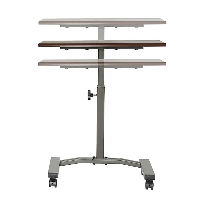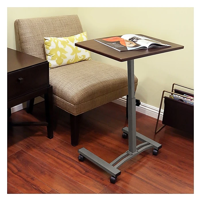 Work the way you want with Seville Classics Mobile Laptop Desk Cart. Easily move your laptop or writing workstation to any space in your home, dorm, or office. Manually adjust the desk’s height and keep it there with the locking knob. Desk features a steel frame for stability, durability, and strength. The base is a low-profile design intended for use with or without casters, so it can be moved close to furniture like couches and recliners. Install the four 1.5 inch casters to enjoy the freedom of a mobile desk that goes where you do. Two locking casters ensure the desk stays put when you need it.