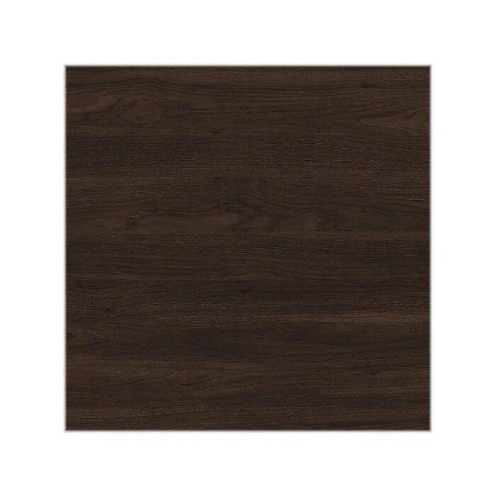 - Made of engineered wood in a black walnut finish with a black powder-coated steel base
