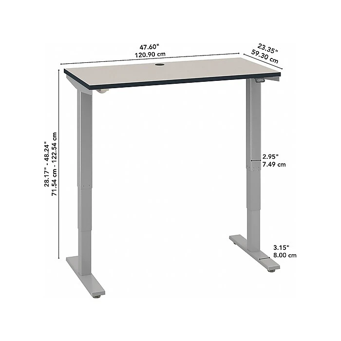 Bush Business Furniture’s Move 40 Height Adjustable Standing Desk is a perfect way to build an ergonomic workspace without the high-end price tag. Give your body and mind a break from sedentary work and enjoy a healthier, more productive office with the push of a button. Three stage units lift the 48W x 24D desktop anywhere from 28 to 48 inches at a speed of 1.25 inches per second so you can change positions without missing a beat. The Adjustable Desk also features an Anti-Collision Sensor that stops movement up or down if an object is detected. Available in a contemporary White Spectrum finish, the durable thermally fused laminate surface resists scratches and stains while a welded 16 gauge steel base allows the desktop to support up to 176 pounds. This Sit-Stand Desk is tested to meet ANSI/BIFMA standards for safety and performance and is backed by a 5 Year Manufacturer’s Warranty.