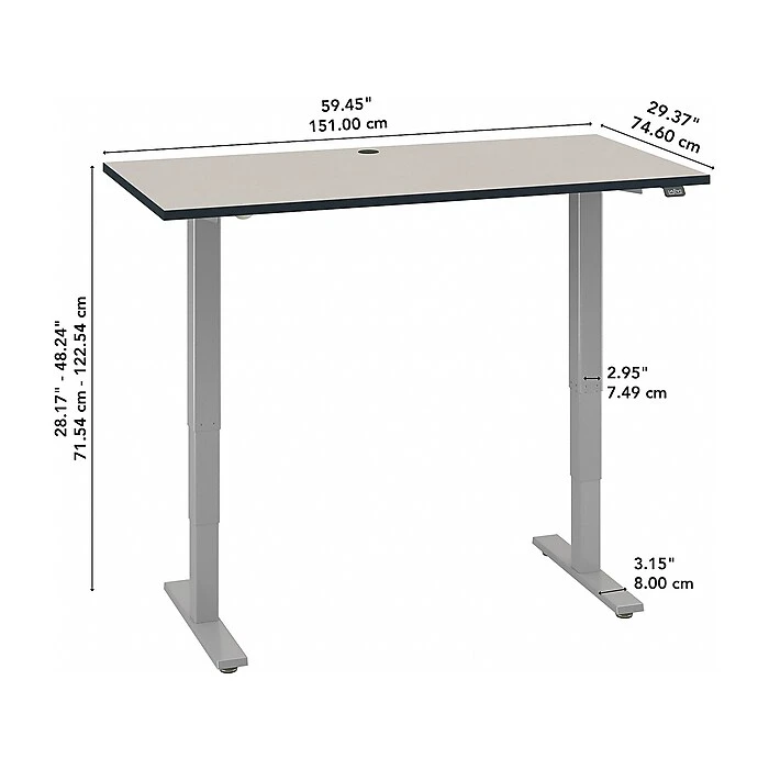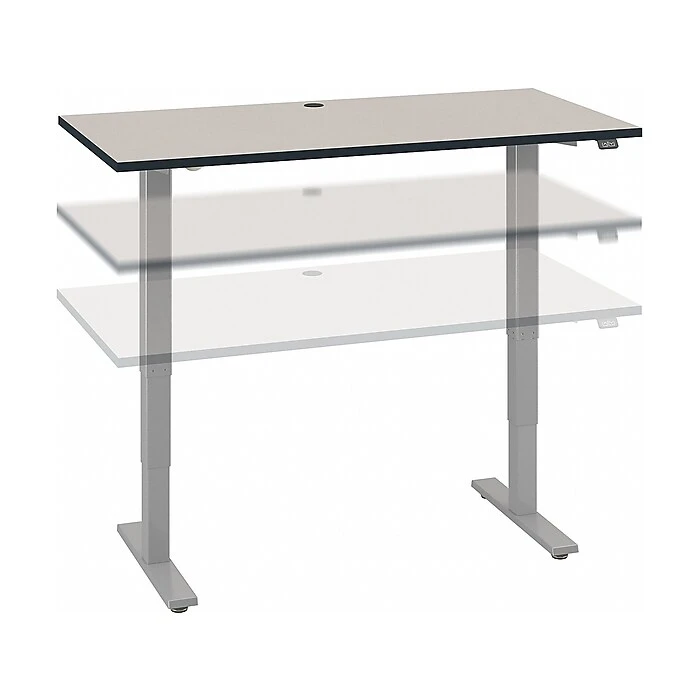 Bush Business Furniture’s Move 40 Height Adjustable Standing Desk is a perfect way to build an ergonomic workspace without the high-end price tag. Give your body and mind a break from sedentary work and enjoy a healthier, more productive office with the push of a button. Three stage units lift the 60W x 30D desktop anywhere from 28 to 48 inches at a speed of 1.25 inches per second so you can change positions without missing a beat. The Adjustable Desk also features an Anti-Collision Sensor that stops movement up or down if an object is detected. Available in a contemporary White Spectrum finish, the durable thermally fused laminate surface resists scratches and stains while a welded 16 gauge steel base allows the desktop to support up to 176 pounds. This Sit-Stand Desk is tested to meet ANSI/BIFMA standards for safety and performance and is backed by a 5 Year Manufacturer’s Warranty.