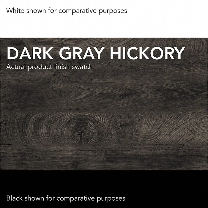 - Made of engineered wood and comes in dark gray hickory finish
