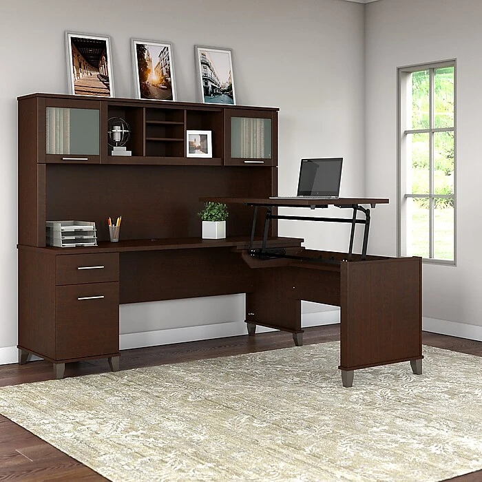 Bush Furniture Somerset 72W 3 Position Sit To Stand L Shaped Desk With Hutch, Mocha Cherry (SET015MR)