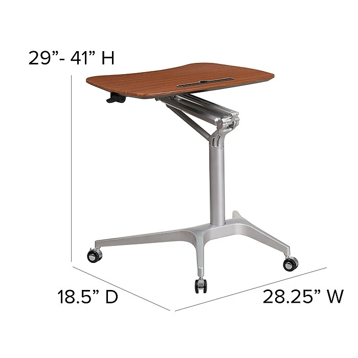 Achieve a healthier way of working with this contemporary, versatile laptop computer desk. We all know that sitting for hours is an unhealthy practice, but with long workdays it has become more common. Standing helps strengthen leg muscles, improves your balance and promotes healthy blood flow. Standing even burns more calories than sitting. This ergonomic desk gives you the option to sit down or stand up. The pneumatic lever allows you to easily adjust the height with minimal effort. When preparing to work you should adjust the desk so the surface is at the most comfortable position for typing.