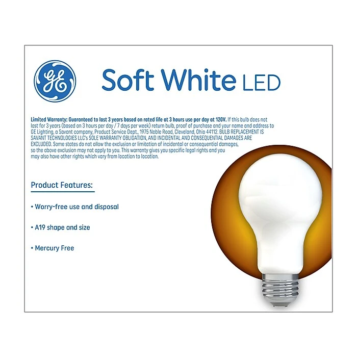 The GE soft white LED A19 general-purpose light bulb offers outstanding energy efficiency and long-lasting performance, producing warm, soft white light. Use this light in table lamps, sconces, and open fixtures to replace 75W incandescent bulbs. Great for frequently used fixtures: the bulb’s long life and low energy use will help you save money on energy.
