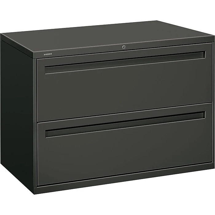 HON Brigade 700 Series 42″ Lateral file cabinet in charcoal color features steel ball bearing drawers that can be operated easily and quietly. Cabinet consists of mechanical interlock and measures 28 3/8″ x 42″ x 19 1/4″.