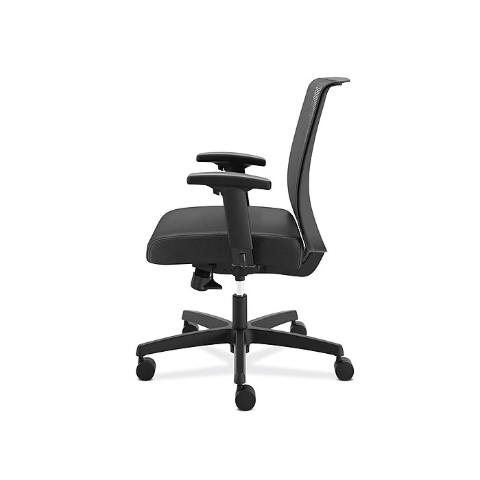 - Chair’s breathable mesh back and intuitive adjustable lumbar support provide all-day comfort and support