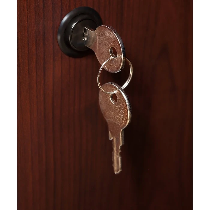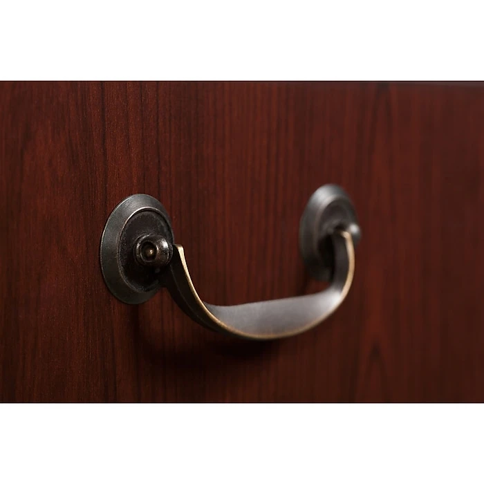 A storage staple of the Bennington collection, the 2 Drawer Lateral File from kathy ireland® Home by Bush Furniture provides room to spare. Two large file drawers accommodate letter, legal, or A4-size files and operate on full extension ball bearing slides for easy reach to materials and a smooth open and close. For added security and safety, the upper drawer locks with key while an anti-tip feature prevents both drawers from being open at the same time to reduce chance for tipping. The rich Harvest Cherry finish, antique brass pulls and decorative edge detailing convey a sense of tradition and old-world charm. Height matches to coordinating Bennington Desks (sold separately) – see the full collection for a total office solution. Durability tested to meet ANSI BIFMA furniture standards for safety and performance and backed by a 6 year manufacturer’s warranty.