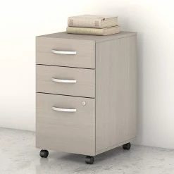 The stylish and progressive kathy ireland® Home by Bush Furniture Madison Avenue lateral file cabinet with shelves presents a storage solution with a modern flair. A perfect choice for home offices, the single-drawer filing cabinet opens on smooth, full-extension ball-bearing slides for an effortless reach to legal-, letter-, and A4-size paperwork. Two open shelves provide a convenient place for books and decorations, and the back panel includes a built-in wire management grommet to accommodate electronics. The surface can also be used to brighten up the room with your favorite pictures and décor. Find the perfect style to complement your work or living space with three attractive finish options.