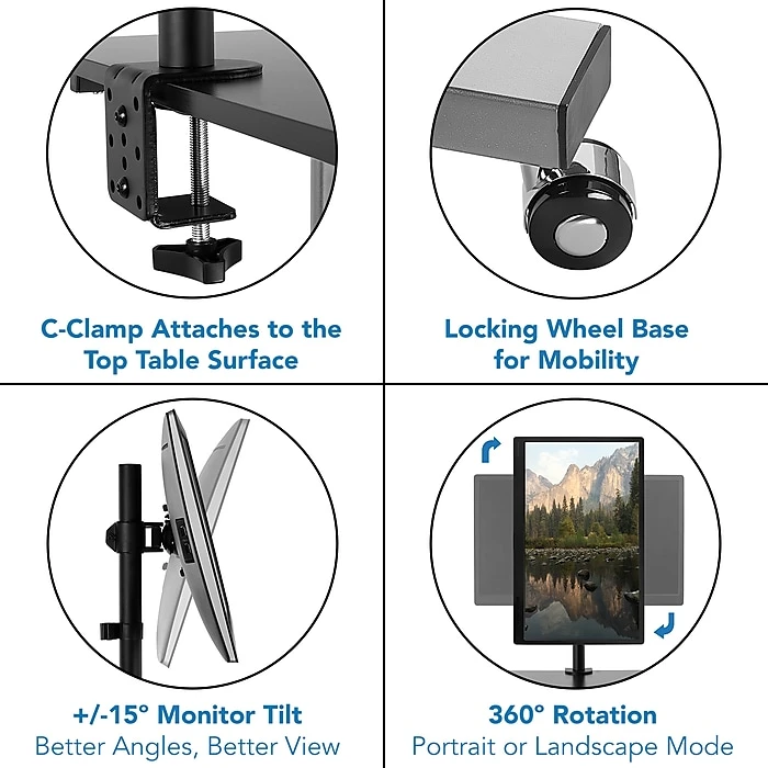 This is an ergonomic sit stand computer desk that allows you to raise and lower your work surface quickly and effortlessly to healthy sit-stand heights so you can work with more comfort. This portable desk also comes with a premium monitor riser/arm to raise the height of your computer monitor. Ideal for use as a mobile computer/laptop station for at the office, home, showroom, and classroom. Carefully designed platforms provide ample space for monitors, keyboards, mouse pad, a PC tower and a printer. Use with or without a monitor stand for an ergonomic layout. High quality steel frame with powder coating ensures durability and reliability. The height of the top two platforms can be adjusted from a maximum top shelf height of 54 inches to a minimum of 37 inches. 17 inches of height adjustment allows to for from a sitting position to a comfortable standing position. The locking casters allow the cart to be stationary or mobile when desired. Due to its size, maneuverability is excellent with total side width of 28” and a depth of 27.5”. Its ergonomic, portable, space saving attributes make it an attractive choice in all types of businesses, office, trade-shows, mall kiosks, retail stores, factories, schools, hospital even at home.