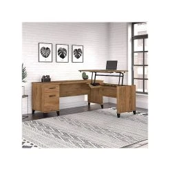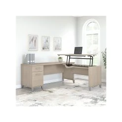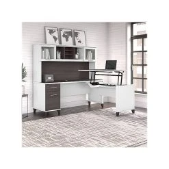 Bush Furniture Somerset 35″-41″ Adjustable Desk With Return And Hutch, Storm Gray/White (SET015SGWH)