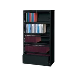 Hirsh HL10000 Series 5-Drawer Lateral File Cabinet, Locking, Letter/Legal, Black, 36″ (17902)