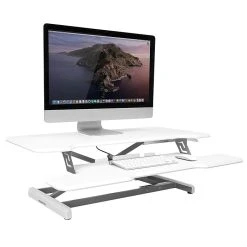 Mount-It! 5″-19″H Adjustable Extra-Wide Sit-Stand Desk Converter, Dark Walnut Woodgrain (MI-15006)
