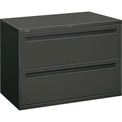 - Two-drawer pedestal filing cabinet holds letter size documents