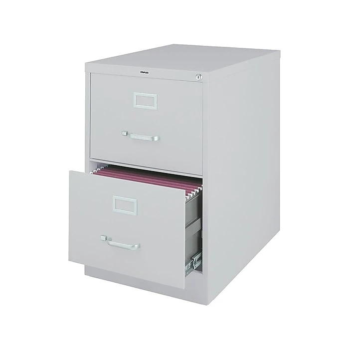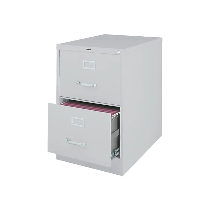 Get a space-efficient solution to record-keeping and document storage with this two-drawer vertical file cabinet. Featuring two deep drawers, this cabinet accommodates large numbers of legal-size hanging folders and keeps stored materials secure with a built-in lock. Adjustable wire followers keep stored documents organized and in place, while the precision ball-bearing glides ensure the drawers open smoothly for easy access to your records. This two-drawer vertical file cabinet has an impact-resistant galvanized drawer structure for long-lasting durability.