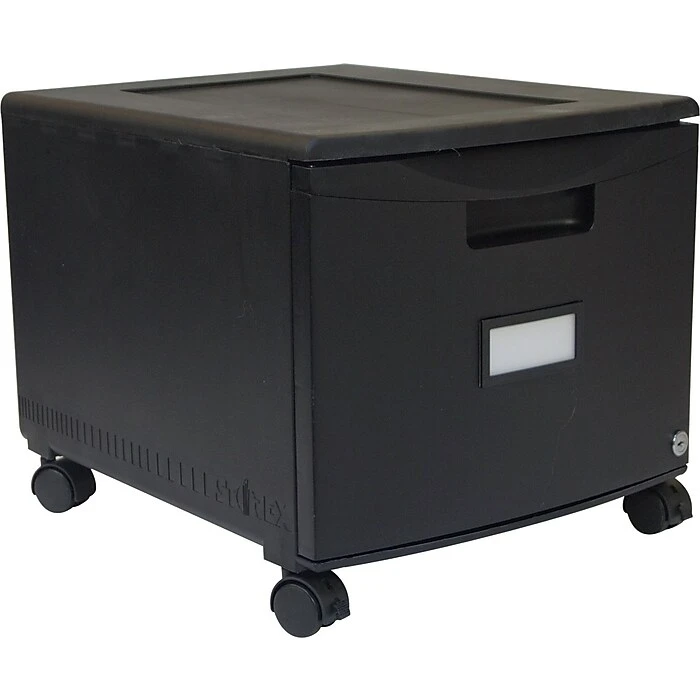 Storex One Drawer Mini File Cabinet with Lock and Casters (61264B01C) is functional and lightweight. The lockable filing drawer is the perfect storage solution for those in need of professional and affordable filing.