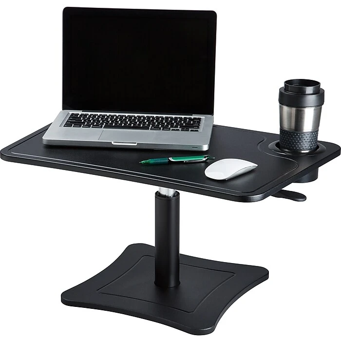 The High Rise Height Adjustable Laptop Stand with Storage Cup creates a functional, standing work space for your laptop or tablet. With a 23.75″ wide by 15.25″ deep surface, the stand can accommodate a laptop, mouse and accessories.